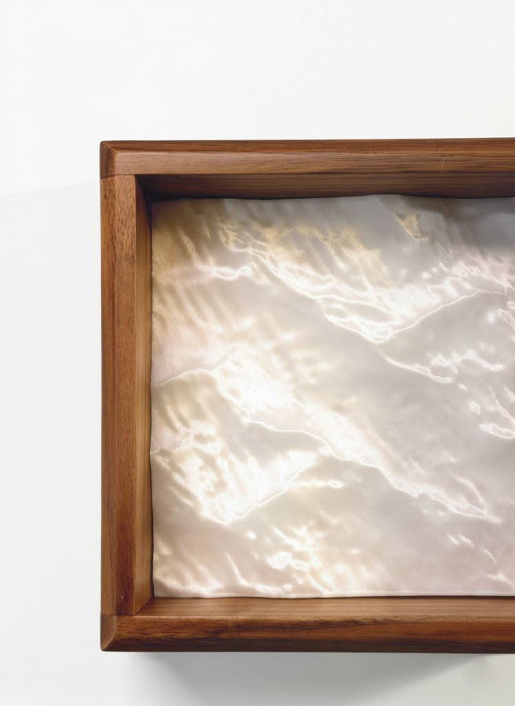 We translated the dynamic beauty of the Narragansett Bay waves into this unique jewelry tray. The 3D printed surface has a pearl-like, fluid quality that looks different in every light, grounded by a substantial wooden frame. It’s designed to gently hold the things you wear every day, bringing a touch of quiet ocean air into your home.